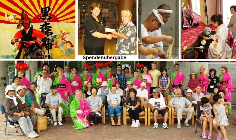 Neben den lehrreichen Vorträgen gab es noch ein breit angelegtes Kultur- und Begegnungsprogramm. An mehreren Tagen wurden auf dem Gelände des Greenpia Hotels für die Bewohner der temporären Siedlungen Udonnudeln von Meistern aus Takamatsu verteilt, Massagen angeboten, eine Teezeremonie veranstaltet, ebenso wie Rakugo-Vorführungen (japanische Geschichtenerzähler) und Sansa-Odori (Volkstänze). Unsere Gruppe besuchte das Herbstmatsuri in Miyako sowie eine Aufführung der Shinto-Tänzer: Kuromori Kagura. Hierbei wurden wir unterstützt von der Osaka-Juku sowie der NGO Taro unter Herrn Daibo und Herrn Takahashi. Außerdem zeigten wir eine Ausstellung zum Thema „Deutsche Energiewende“. Erkundungsfahrten führten uns bis nach Fudai.