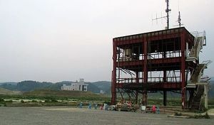The disaster prevention tower, where the final tsunami warnings were broadcast from. 43 people on the rooftop were washed away and nine survived.